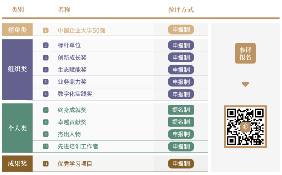 重點(diǎn)考察組織在戰(zhàn)略投資、系統(tǒng)儲(chǔ)備、培訓(xùn)運(yùn)營(yíng)、學(xué)習(xí)設(shè)計(jì)、效果評(píng)估、績(jī)效改進(jìn)、品牌塑造、開拓創(chuàng)新、數(shù)字化運(yùn)營(yíng)等方面的建樹,表彰典范,樹立標(biāo)桿。