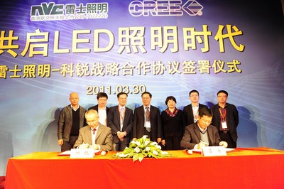 3月30日,LED 照明領(lǐng)域再次擲出重磅炸彈,雷士照明與科銳公司(CREE)在上海新國(guó)際展覽會(huì)簽署戰(zhàn)略合作協(xié)議,進(jìn)行強(qiáng)強(qiáng)聯(lián)合,開(kāi)啟 LED 照明高端市場(chǎng)發(fā)展的新篇章。雷士照明常務(wù)副總裁殷慷先生和科銳中國(guó)市場(chǎng)總經(jīng)理唐國(guó)慶先生分別作為雙方代表簽署戰(zhàn)略合作協(xié)議。同時(shí)科銳副總裁兼中國(guó)區(qū)總經(jīng)理施毓?fàn)N先生、中國(guó)照明電器協(xié)會(huì)理事長(zhǎng)陳燕生先生、中國(guó)照明電器協(xié)會(huì)副理事長(zhǎng)兼秘書長(zhǎng)劉升平女士、中國(guó)照明電器協(xié)會(huì)副秘書長(zhǎng)竇林平先生應(yīng)邀出席,共同見(jiàn)證此次簽約儀式。