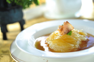 君綽軒國慶煙花匯演套餐 B -- 君綽三小碟、金湯蟹肉大生翅、蒜蓉蒸開邊龍蝦、碧綠鮑脯扣鵝掌、香煎安格斯牛柳、上湯什菌津膽、蝦干肉碎有機紅糙米飯、楊枝甘露、水果拼盤。每位港幣888元。