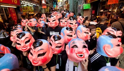 澳門政府竭盡全力打造澳門為一個藝術家集中地。圖為一年一度的巡游 -- 從大三巴牌坊到議事亭前地。