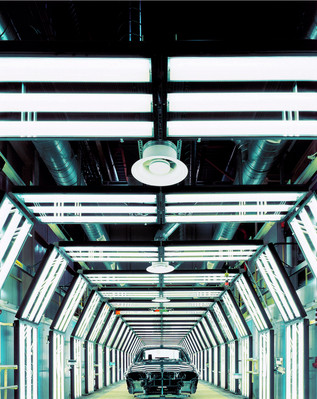 飛利浦照明與寶馬華晨的合作迄今已有十年。在2011年完成的寶馬華晨二期項目中,設計團隊結合流水線的工藝環境,為沖壓、焊接、油漆、總裝等四大生產環節設計了全線使用 DALI 控制的照明解決方案。實際工作中,操作者可以通過系統終端,對全廠數萬套 TTX188 與 T5 產品組合進行編程、監測、控制,以求較大限度地適合柔性生產流水線的照明要求,同時較大限度地節能和利用了電力,滿足了寶馬無論是對生產線還是產品都精益求精的專注要求。