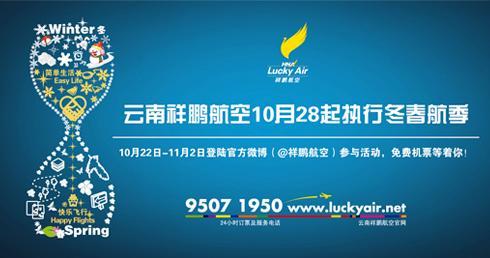 除此之外,云南祥鵬航空還為旅客們準(zhǔn)備了超值免票大禮。10月22日-11月2日,云南祥鵬航空的新浪官方微博(@祥鵬航空 http://e.weibo.com/luckyairline )特別舉辦了關(guān)于2012/13冬春航班換季的有獎問答活動,廣大微博用戶們可于該時間段內(nèi)按照要求參與活動并正確回答微博問題,就有機會帶走4張免費機票大獎,更有眾多精美小禮品贈送。