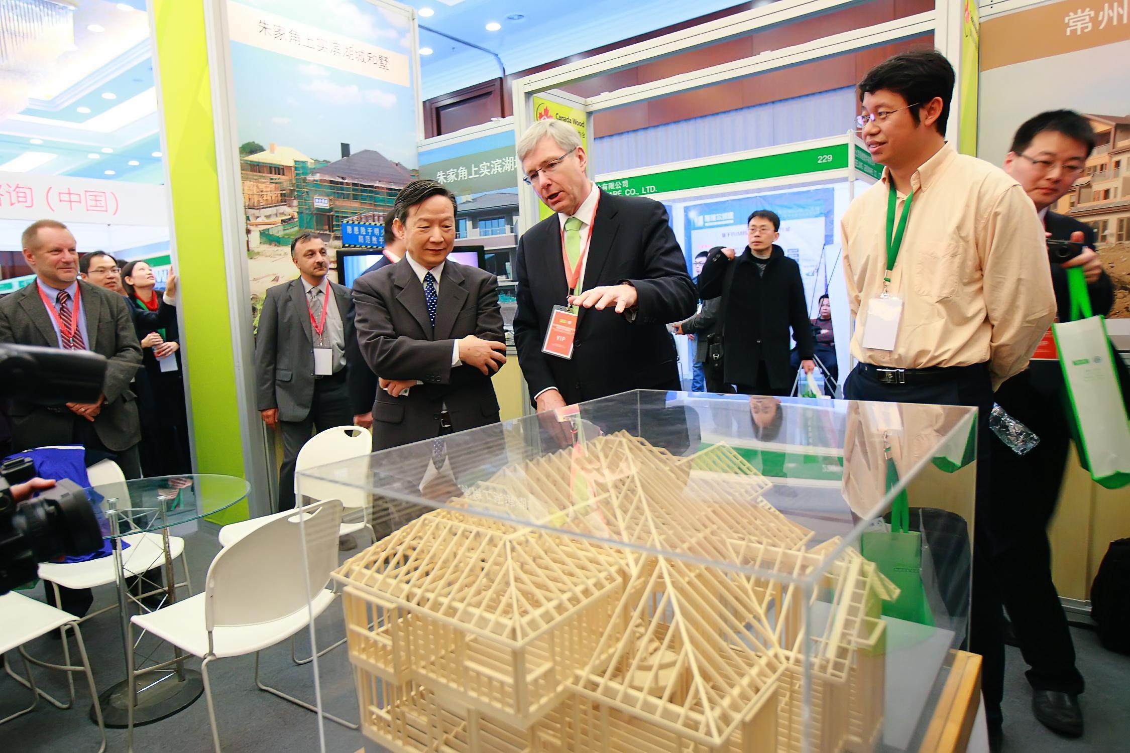 北京2013年4月3日電 /美通社/ -- 由中國國家住建部主辦的第九屆國際綠色建筑與建筑節(jié)能大會暨新技術與產品博覽會在北京國際會議中心隆重開幕。在開幕儀式上,加拿大駐華大使趙樸先生(Guy Saint-Jacques)發(fā)表了致辭,另外出席的還有加拿大聯(lián)邦政府自然資源部林務局產業(yè)和貿易處處長 Robert Jones 先生。開幕式后,趙樸大使陪同中國住建部副部長仇保興參觀了加拿大木業(yè)協(xié)會在此次綠色大會的展臺并介紹了現(xiàn)代木結構作為綠色建筑代表在中國的發(fā)展前景。仇保興部長在開幕式及隨后的參觀中對現(xiàn)代木結構在綠色建筑產業(yè)中可以發(fā)揮的積極作用做了高度評價,并對木結構建筑行業(yè)的未來發(fā)展提出了建設性的建議。今年是加拿大木業(yè)協(xié)會自2009年以來,第五次參與到該中國規(guī)模和影響力較大的綠色建筑節(jié)能行業(yè)盛會。
