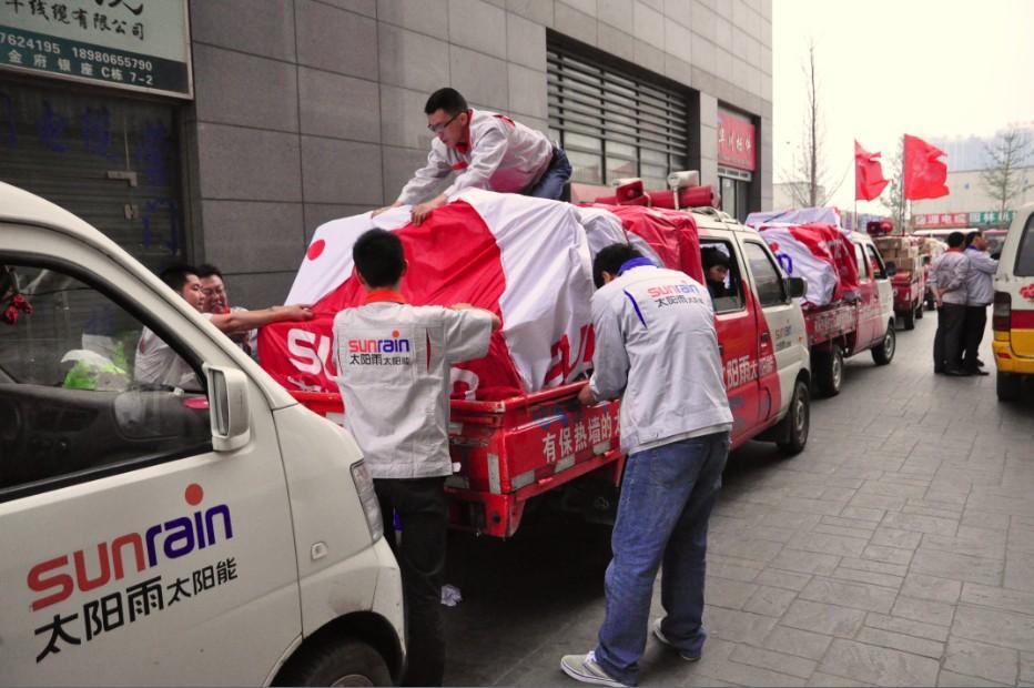 在5.12汶川地震援助經(jīng)驗基礎(chǔ)上,太陽雨公益慈善基金第一時間啟動應急預案,調(diào)用內(nèi)外部資源,第一時間通過太陽雨終端銷售渠道采購首批帳篷、水、食物等,目前該批物資已運抵震區(qū)。同時,春夏之交,災后創(chuàng)傷容易感染,太陽雨公益慈善基金緊急從北京藍戈藥業(yè)采購了一批易折清潔消毒棒(70%-75%乙醇溶液),共10萬支,這批便捷醫(yī)療輔助用品目前正在運往震區(qū)的途中。另外,太陽雨公益慈善基金將捐款1000萬元,用于支持震區(qū)急需物資的采購、太陽能生活熱水系統(tǒng)以及太陽雨陽光浴室的建造等項目。