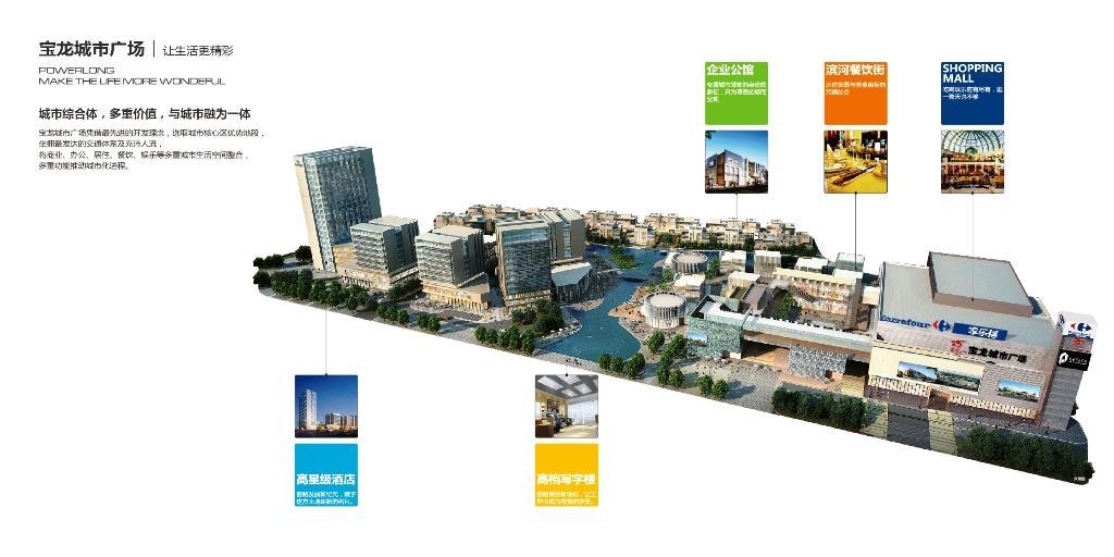按照寶龍一貫的經營模式,將自持的部分優質物業進行統一招商運營。2013年上半年招商啟動,從二季度開始,按照社區生活型購物中心的定位,招商成果勢如破竹,目前招商率已突破90%。不僅吸引了家樂福、保利影院、寶樂迪KTV、星藝電動漫城等主力店品牌,還包括肯德基、必勝客、康師傅牛肉面、85度C、豐收日、厚味香辣館、德莊火鍋等幾十家餐飲美食品牌,真正實現了吃喝玩樂購一條龍服務。